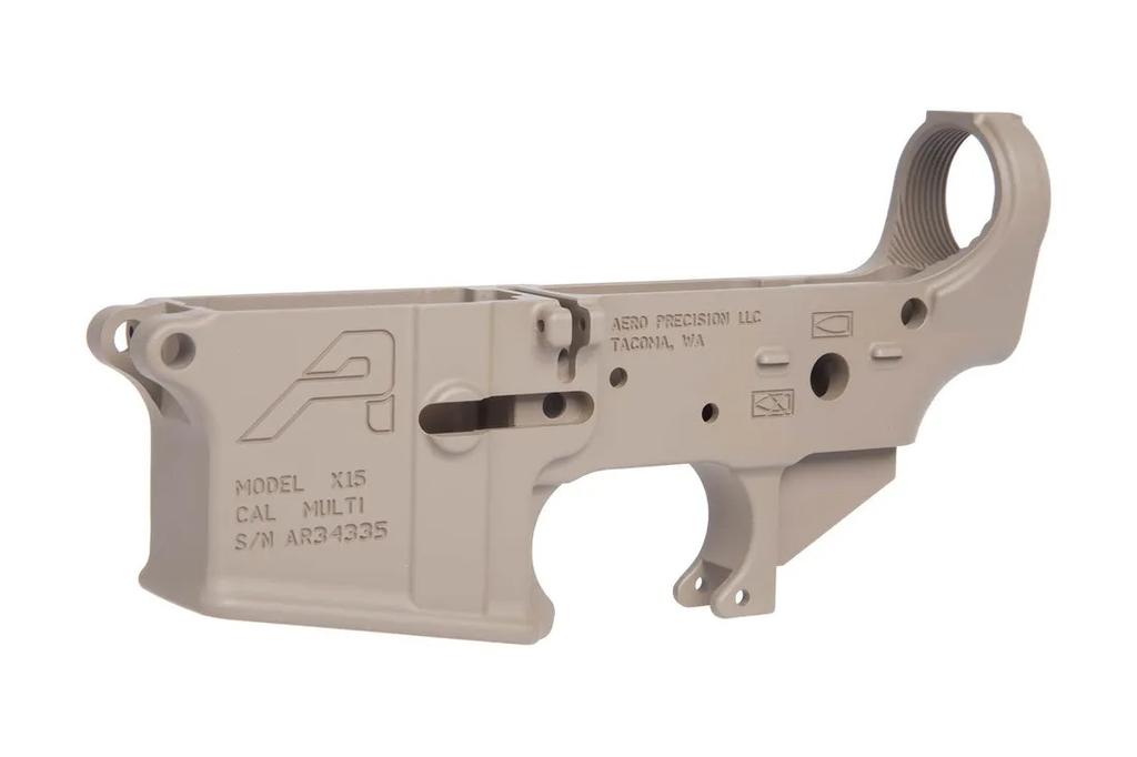 The Aero Precision Gen 2 Stripped AR-15 Lower Receiver in FDE is the perfect foundation for your next build. This stripped lower receiver features 7075-T6 forged aluminum construction with a Magpul FDE Cerakote finish that looks great and provides added durability and protection. The Gen 2 Stripped AR-15 Lower Receiver is machined to mil-spec, making it compatible with all mil-spec AR-15 parts and accessories. It features a flared magwell for easier magazine changes and an integrated trigger guard for added convenience. The grip tang is machined for a nylon-tipped upper tensioning screw, which ensures a tight fit when assembled with an upper receiver. While not required for assembly, the takedown detent hole is threaded for a 4-40 set screw allowing the takedown spring and detent to be installed without a carbine end plate or rifle stock (screw not included).