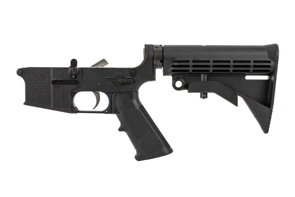The AM-15 complete lower receiver features an A2 pistol grip, M4 style collapsible carbine stock, and open ear with Mil-Spec trigger guard. It is type III black hardcoat anodized and comes with Anderson's Lower Parts Kit. Get started on your AR-15 build today with Anderson Manufacturing's reliable and affordable complete lower receiver.
