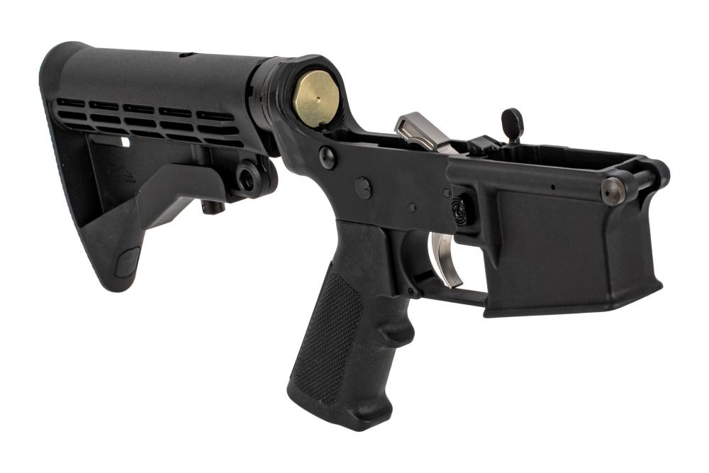 This Lower Receiver comes with Anderson's Lower Parts Kit for AM-15 installed. Includes the following: Bolt Catch, Bolt Catch Plunger, Bolt Catch Roll Pin, Bolt Catch Spring, Buffer, Retainer, Buffer Retainer Spring, Disconnect, Disconnect Spring, Hammer, Hammer Pin, Hammer Spring, Magazine Catch, Magazine Catch Button, Magazine Catch Spring, Pistol Grip (A2 style), Pistol Grip Lock Washer, Pistol Grip Screw, Pivot Pin, Pivot Pin Detent, Pivot Pin Detent Spring, Selector, Selector Detent, Selector Detent Spring, Takedown Pin, Takedown Pin Detent, Takedown Pin, Detent Spring, Trigger, Trigger Guard, Trigger Guard Roll Pin, Trigger Pin, Trigger Spring.