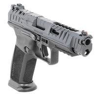 The Canik SFx Rival has a total length of 8.1", a height of 5.7", a 1.41" width, a 5" barrel, and an overall weight of 29.5 oz. With these specifications the Canik SFx Rival can compete in IDPA, IPSC, and USPSA without restrictions. The Canik Rival is available in Canik Rival Grey with Cerakoted gold accents and in an all-black configuration called the Canik SFx Rival Dark Side. With adjustable fiber optic sights, a lightened 90 degree diamond cut aluminum flat trigger, reversible magazine releases and sizes, ambidextrous slide release, aggressively serrated and ported slide, 1913 Picatinny rail, external mag-well, 3 grip back strap sizes, double undercut trigger guard, ergonomically redesigned beavertail, aggressive grip texturing, and a completely modular setup, the SFx Rival is ready to win right out of the box!