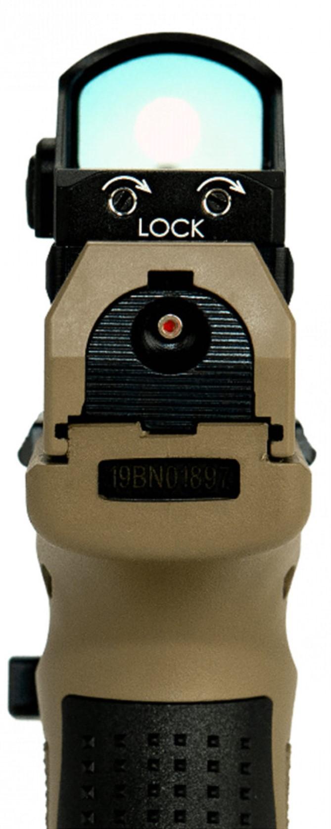 CANIK, TP9SF Combat, Striker Fired, 9MM, 4.78in Threaded Barrel, Polymer Frame, Aluminum Speed Funnel Mag Well, Flat Dark Earth Finish, Fiber Optic Front Sight, Vortex Viper Red Dot, Optics Ready Slide with Adapter Plates, Charging Handle, Includes Holster & 2 Magazines (1-15Rd and 1-18Rd)