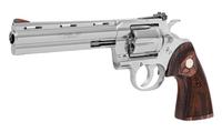 The Python is back! Building on the Colt Snake Gun legacy, the legendary double-action revolver returns in stainless steel in 4.25" and 6" barrel lengths. The 2020 Python features modern stainless steel alloys and a re-designed rear sight. Thirty percent more steel beneath the rear adjustable target sight gives you a stronger revolver and more robust shooting experience. A recessed target crown, user-interchangeable front sight, and Walnut grip with the iconic Colt medallion make this a gun you will want to shoot AND show off. The Python is chambered in .357 Magnum and also accommodates .38 Special cartridges.