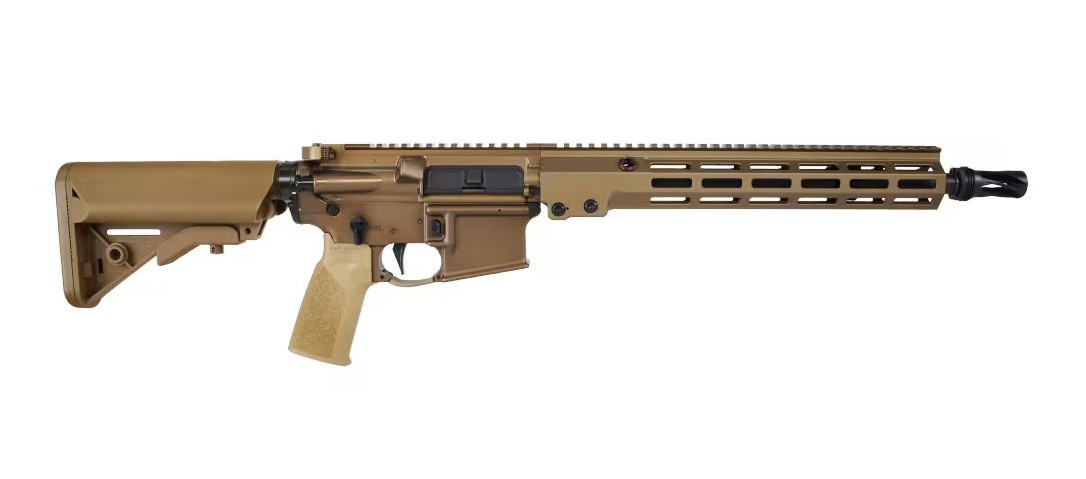 Other features of the Super Duty MOD1 Rifle is the two-stage SSA-E X Lightning Bow trigger and a Super Duty lower. The SSA-E X trigger is a perfect balance between a classic M4 trigger and a flat body trigger that provides a smooth, lightweight first stage take-up and crisp second-stage break. The Super Duty Lower on the other hand is machined from premium 7075-T6 aluminum, and is equipped with Geissele’s Ultra Duty Lower Parts Kit with an ambidextrous configurable safety and an Ultra Precision trigger guard. To accommodate a wide range of optics, the Super Duty MOD1 Rifle is equipped with an updated MK16 Super Modular Rail that’s been perfectly mated to the upper receiver to eliminate and risk of rail rotation. The MK16 rail runs the length of the receiver and fore-grip, and provides more than enough space for iron sights, red dots, scopes, and clip-on thermal/night vision devices. The Super Duty Rifle is completed with a B5 Systems Enhanced Sopmed Stock and an Airborne Charging Handle.