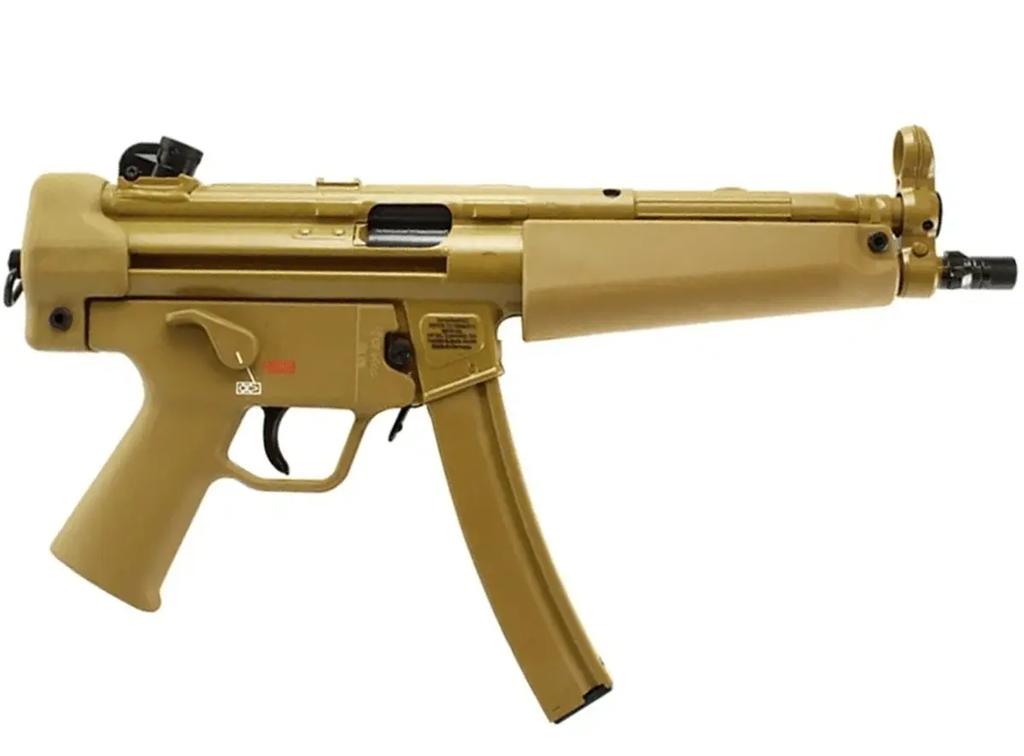 The SP5 was developed by Heckler & Koch as a semiautomatic, civilian sporting pistol that matches the look and feel of the legendary MP5 submachine gun.The SP5 features a Navy barrel with threaded tri-lug adaptor; paddle magazine release; fluted chamber; roller-delayed blowback operating system.