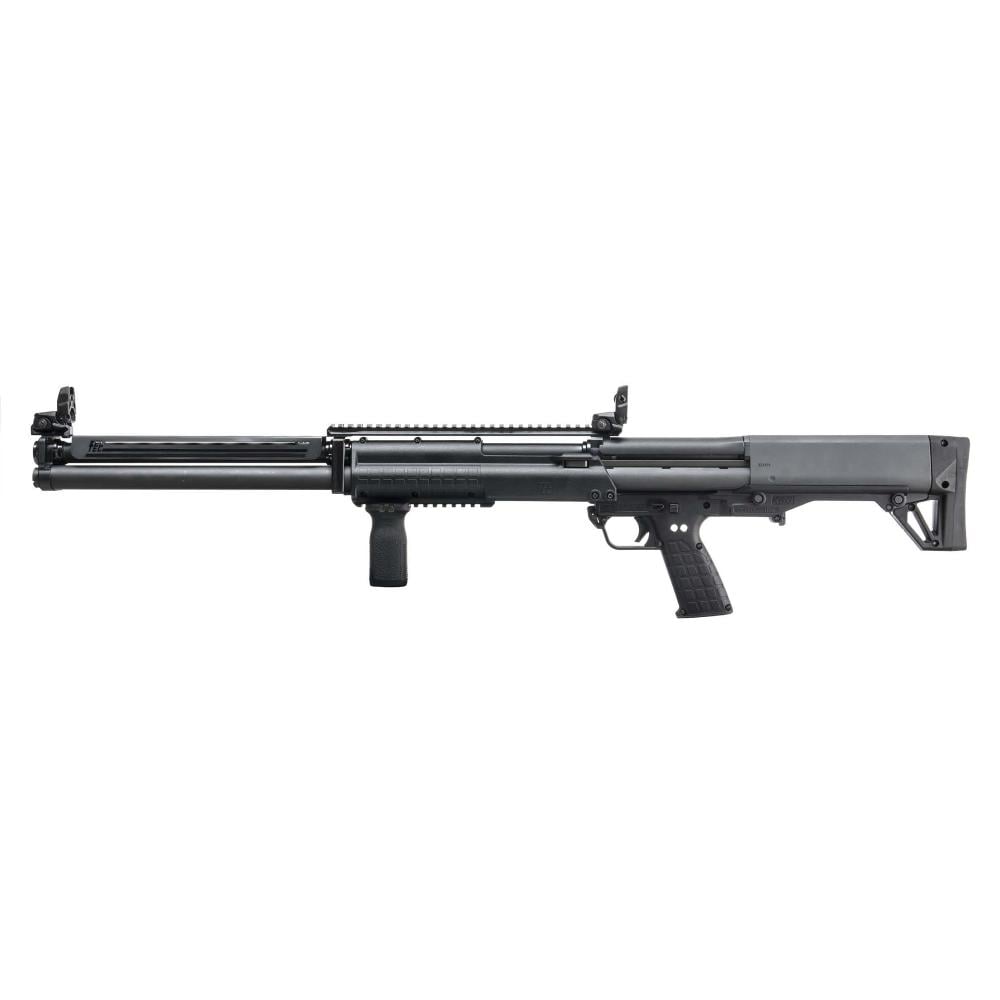 The KSG-25 is no ordinary KSG. Its extended dual tube magazines hold twenty 3 inch, 12 gauge shells (plus one in the chamber), with the flexibility of switching between various projectiles. A patented downward ejection system makes it truly ambidextrous, while its 38 inch overall length, and 30.5 inch cylinder bore barrel still makes it more compact than a traditional style shotgun that holds a fraction of the amount of ammo.