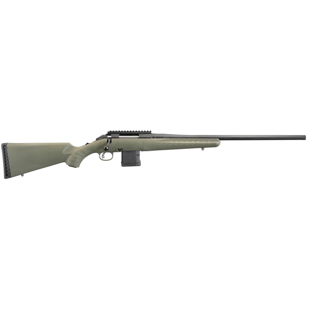 Stock Synthetic Ergonomic, lightweight synthetic stock designed for quick, easy handling blends a classic look with modern forend contouring and grip serrations. Ruger Marksman Adjustable trigger offers a crisp release with a pull weight that is user adjustable between 3 and 5 pounds, allowing shooters to make that perfect shot. The one-piece, three-lug bolt with 70 degree throw provides ample scope clearance and utilizes a full diameter bolt body and dual cocking cams for smooth, easy cycling from the shoulder. Patent-pending Power Bedding, integral bedding block system positively locates the receiver and free-floats the barrel for outstanding accuracy. Offers minute-of-angle accuracy that can make every hunt a success. Cold hammer-forged barrel results in ultra- precise rifling that provides exceptional accuracy, longevity and easy cleaning. Features a visible, accessible and easy-to-actuate tang safety that provides instant security. Soft rubber buttpad is crafted for maximum recoil reduction.
