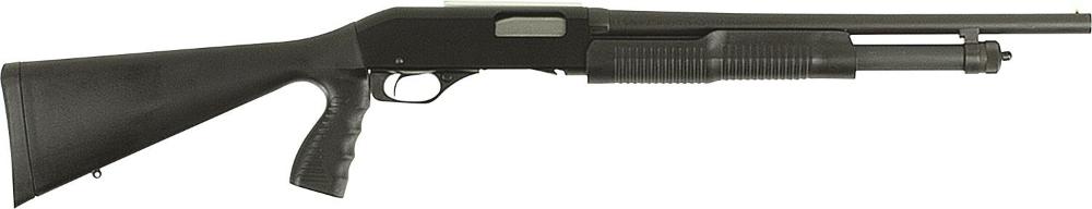The Stevens 320 Security shotgun is loaded with hard-hitting tactical features including a smooth, reliable pump action, proven rotary bolt and dual slide-bars. This model combines an 18.5-inch security barrel, bead sights and a black matte synthetic stock. Available in 3-inch, 12-gauge chambering with cylinder choke, 14.5-inch length of pull, bottom-loading tube magazine and five-plus-one capacity.